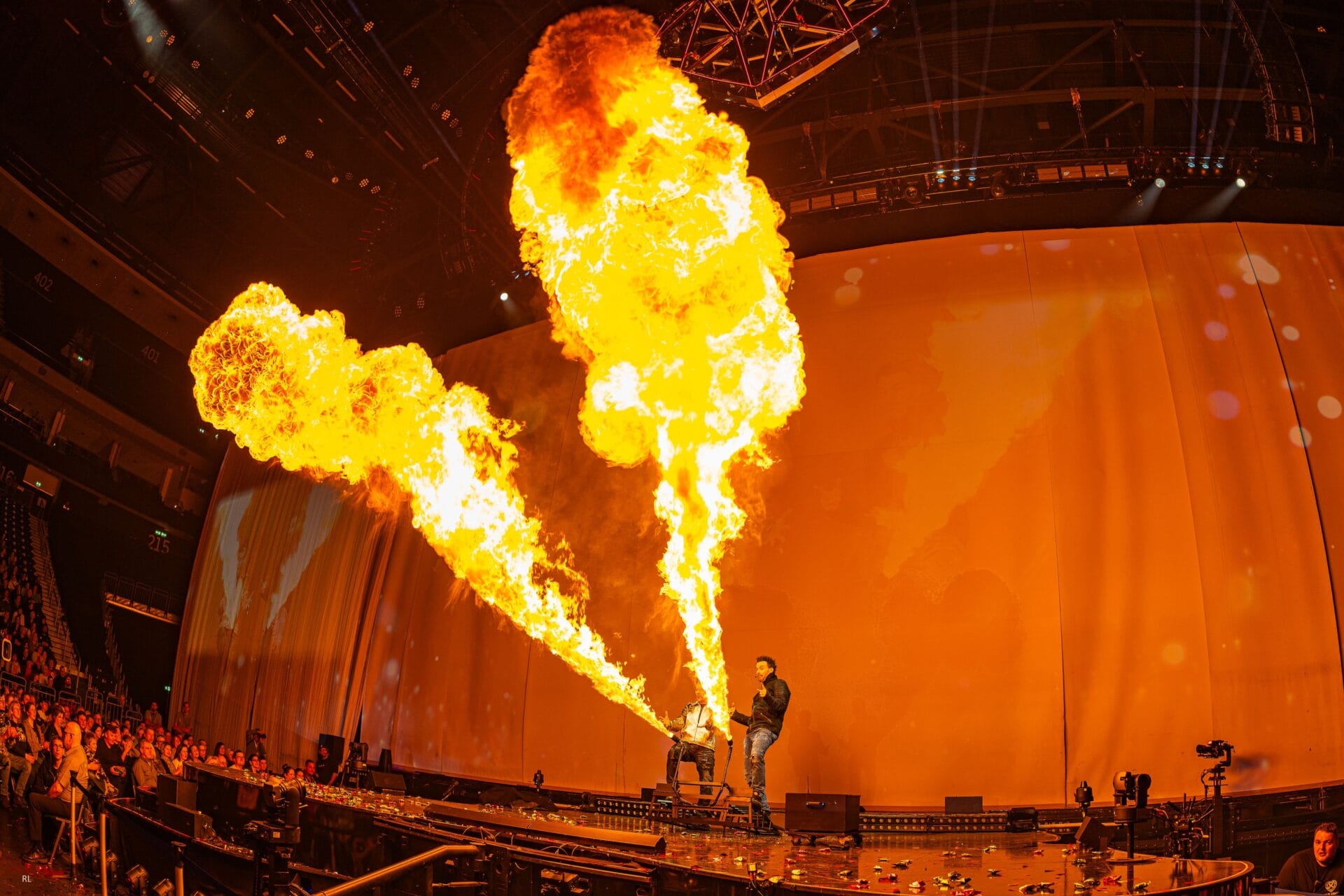 Ein imposantes Intro, Pyro, Hardrock-Klänge a la Rammstein und Special Effekts am laufenden Band… bei der Jubiläumstour fahren die Ehrlich Brothers ganz groß auf und präsentieren das Beste und Spektakulärste aus ihrer bisherigen Karriere. So tauchte in der ÖVB-Arena Bremen wie aus dem Nichts mal ein Motorrad auf der Bühne auf… und auch einmal ein riesiger Monstertruck. Klar, einer der wohl legendärsten Tricks des Duos durfte auch in Bremen nicht fehlen. Genial war auch, wie einmal Chris plötzlich am anderen Ende des Innenraums erschien… oder auch später beide Brüder zusammen über dem Publikum schwebend auf einem Bike.