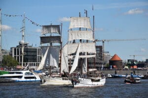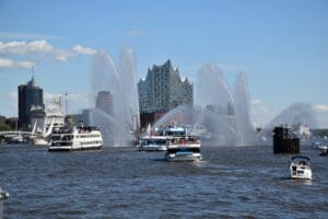 Auf der Meile von Baumwall bis zu den Landungsbrücken herrschte viel Trubel, die Anlegestellen und der Hafen waren randvoll mit Schaulustigen, die sich die Einlaufparade des diesjährigen Hamburger Hafengeburtstags nicht entgehen lassen wollten. Medien-puls.com stieg auf eines der Fahrgastschiffe, um das Treiben aus nächster Nähe zu beobachten. Dabei bot sich schnell ein beeindruckendes Bild: Vor der Kulisse mit dem Michel und der Elphi wurden es in Windeseile immer mehr historische Schiffe, die ein einmaliges Panorama schufen. Dabei schien es gar nicht aufzuhören… immer mehr Schiffe kamen Richtung Landungsbrücken gefahren oder gesegelt. Keine Frage, da herrschte wieder mächtig Betrieb auf der Elbe in diesem Jahr! Nach der Einlaufparade nutzten die Besucher die zahlreichen Möglichkeiten… ob auf der Kirmes oder an der Meile… es war mächtig was los an Tag 1 des 836. Hamburger Hafengeburtstags! Abends sollte dann das musikalische Highlight anstehen: „Elbe in Concert“!