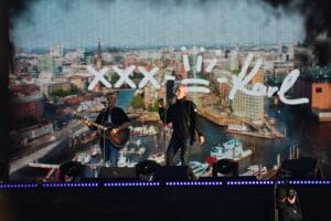 Die beeindruckende, riesige Bühne wurde gegen 19.15 Uhr direkt vor die Anlegestellen an den Landungsbrücken gefahren, mitten auf der Elbe traten die Acts auf. Den Anfang machte der Mann, dessen Stimme viele Jahre im Volksparkstadion vor jedem Spiel nicht wegzudenken war: Lotto King Karl… der natürlich seine Hymne „Hamburg, meine Perle“ anstimmte! Als er auf den möglichen Aufstieg des HSV angesprochen wurde, der heute (10.05.25) am vorletzten Spieltag perfekt gemacht werden kann, antwortete der Musiker: Dass wir hochgehen, ist klar. Es ist aber auch egal, ob es morgen oder eine Woche später ist. Wir werden aufsteigen!“ Keine Frage, die Ikone legt sich fest!