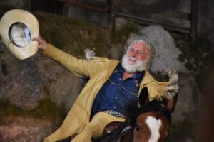 Die neue Rolle des Westmanns für Karl-May-Spiele-Legende Harald Wieczorek ist dazu mit ganz viel Herz geschrieben worden. Hier dürfen natürlich auch einige Anspielungen auf seine Karriere am Kalkberg nicht fehlen. So sagt „Majestät“: „Seit 46 Jahren reite ich durch die Prärie“. Und weiter: „… bin immer wieder aufgestanden“. Das ist er wahrlich… kein anderer Darsteller ist so oft in den Stücken gestorben und hat dann mit der zweiten Rolle im selben Stück eine Wiederbelebung erfahren. Ob er in seiner neuesten Rolle in „Halbblut“ auch wieder stirbt? Das wollen wir an dieser Stelle nicht spoilern….