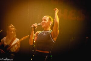 Als dann Sandra Hesch selbst die Bühne betrat, war die Stimmung im Club bereits tosend. Mit dem gleichnamigen Song zur Tour „Immer da“ eröffnete sie ihr Konzert – ein gefühlvoller Einstieg voller Tiefe und Nähe. Diese emotionale Offenheit zog sich durch den gesamten Abend: Sandra sang von ihren getrennten Eltern, die sie als Kind nie verstanden hatte, von der Essstörung, die sie mit 13 entwickelte, und erzählte davon, wie sehr sie dankbar ist, dass dieser Song heute anderen hilft.
